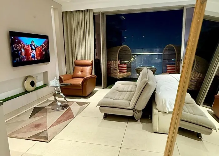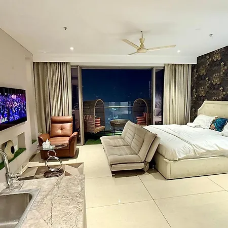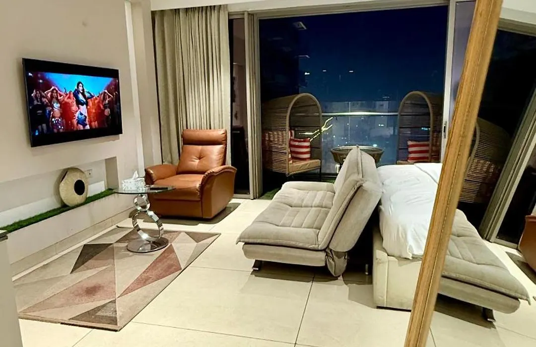 寝室1室のLuxury Studios Key 3 グルガウンはグルガウンに位置し、Badshahpur Fortから歩いて25分です。ジャグジー、ジャグジー とサウナなどのスパ設備を提供しています。 78m²のアパートから7kmくらいのところにSai Ka Anganがあります。